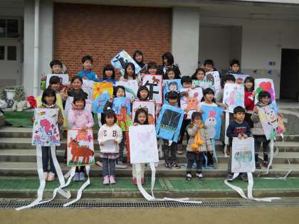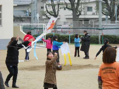 姫里地域青少年育成会主催「たこあげ大会」が本校運動場で行われました。まずは、たこに描いた絵の出来栄えをアピール。みんなよくできていました。次は、運動場を駆け回って、誰がよくあがるか競いました。屋上近くまであがったたこもありました。最後は、みんなで記念撮影。たくさんの笑顔が見られました。育成会の皆様、お疲れ様でした。