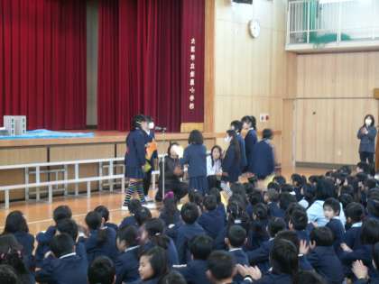 美化委員から掃除をしっかり行ったクラスにピカピカ賞の表彰がありました。
