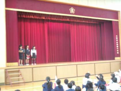 舞台の上の幕と幕の間のすきまを飛んでいくものを、当てるクイズです。