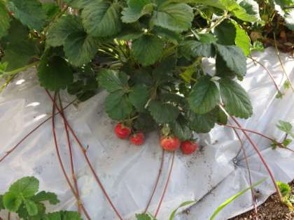 畑のイチゴも色づき、学校に初夏がやってきました。