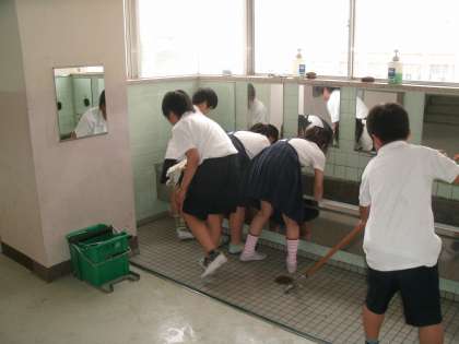 昼の清掃活動の様子です。子どもたちは毎日、ていねいにそうじをしています。