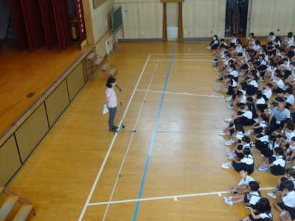 まず校長先生から、「大きな木」の話を例えとして、人は一人では生きていけません、君たちは担任の先生、教職員、保護者、地域の方々に支えられて生活しています。この夏休み中にそういう方々にお返しをできるようにしましょうというお話がありました。