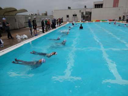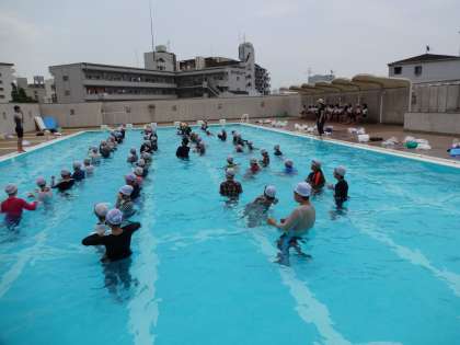 4年生と6年生が、安全水泳指導(着衣泳)をしました。
