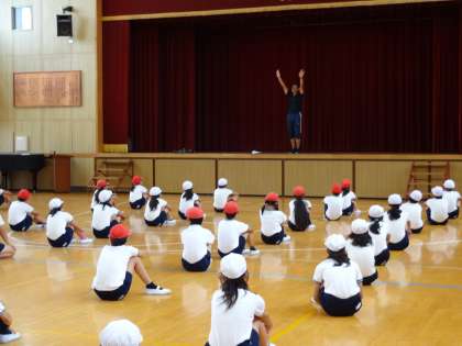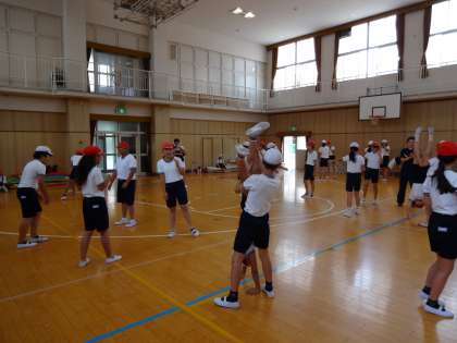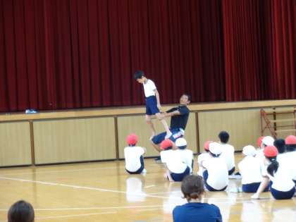 ほとんどの児童が組体操の技に取り組んだのが初めてでしたが、友達と協力しあいながら、技に成功した児童もいました。
