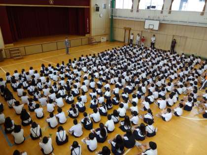 「夏休みの過ごし方について、校長先生から三つの注意があります。」