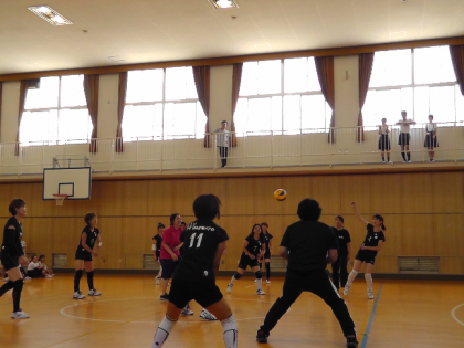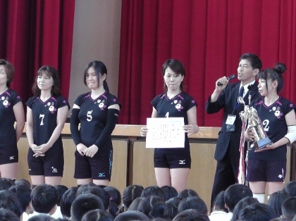 今朝の児童朝会にて、PTAの女子バレーボール部のみなさんにお越しいただきました。