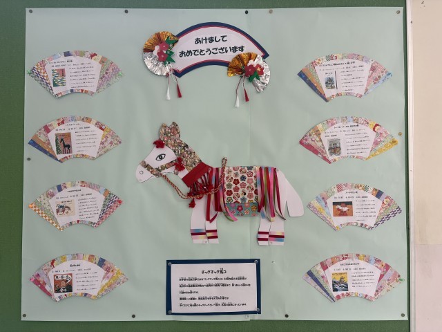 図書室前に掲示物には、学校司書さんが午(うま)年にちなんだ掲示物で、「馬」にまつわる本を紹介しています。