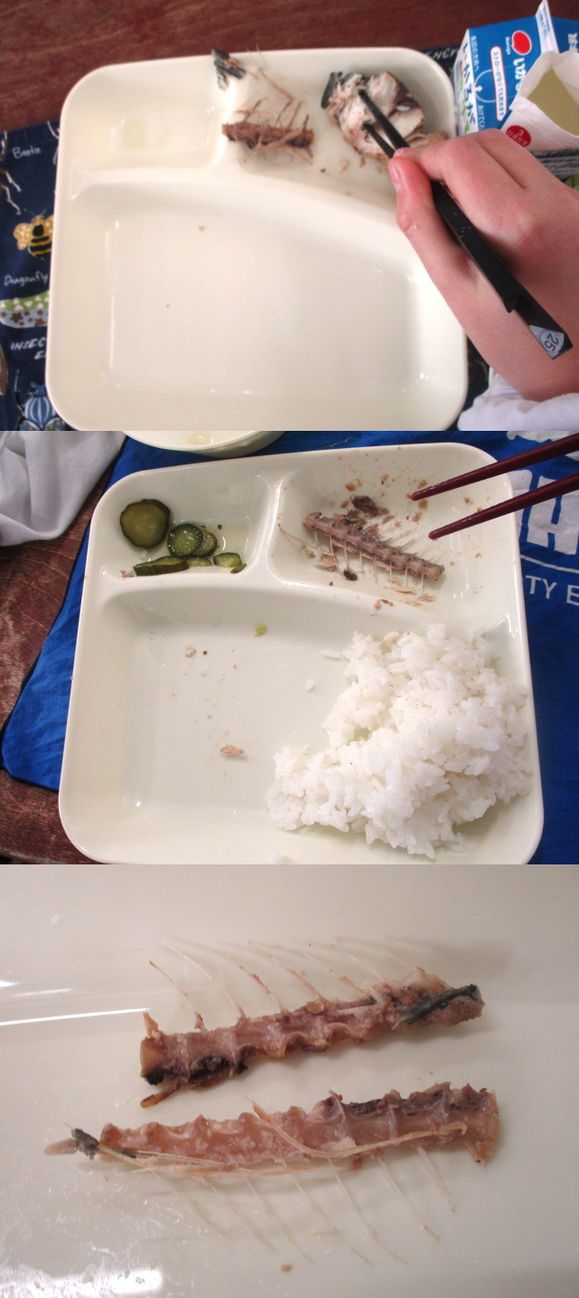 骨がけっこう多かったので、教室を回ってみると、大きな骨を上手にとって、きれいに食べられている児童がたくさんいました。骨もピカピカ!食器もピカピカです!「美味しかったー」「おかわりしたよー」と感想を教えてくれました。
