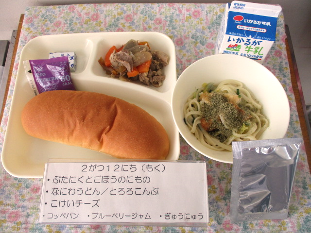 本日は、なにわうどんの登場です。なにわうどんは、きつねうどんをイメージしています。1/16の三角に切って、あまからく煮たうすあげ、かまぼこ、はくさい、青ねぎが入ったうどんに小袋に入ったとろろこんぶを入れ食べます。きつねうどんは、大阪でうまれたといわれています。とろろこんぶは、昔から大阪で作られてきました。この二つを組み合わせたうどんを、大阪市の給食では「なにわうどん」と呼んでいます。「今日、うどんなん?」「やったー!!」「これ美味しいやつやー!!」と大喜びでした。本日は、お休みが多かったため延期になっていた、HKI姫里給食委員会で給食週間の集会を行いました。