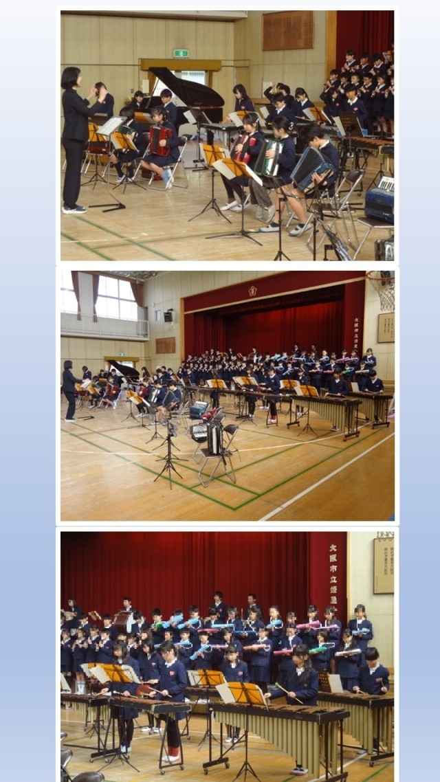 5年生は講堂にて、音楽の「音楽発表会 ~未来への一歩をふみ出そう~」を行いました。高学年らしい、心を一つにした美しいハーモニーと迫力ある演奏を披露し、次の一歩を踏み出す意欲を表現することができました。
