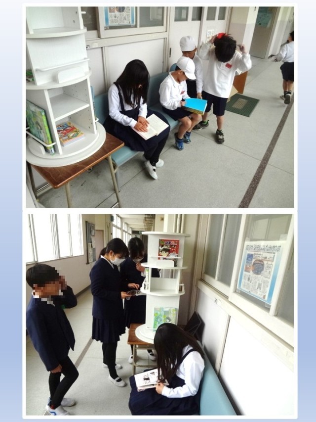 早速、子どもたちが休み時間、この場所に来ることを楽しみにしている様子が見られます。本を通して、友だちや先生方との会話も弾んでいます。学校内でのほっと落ち着ける居心地のいい場所の一つになることを願います。