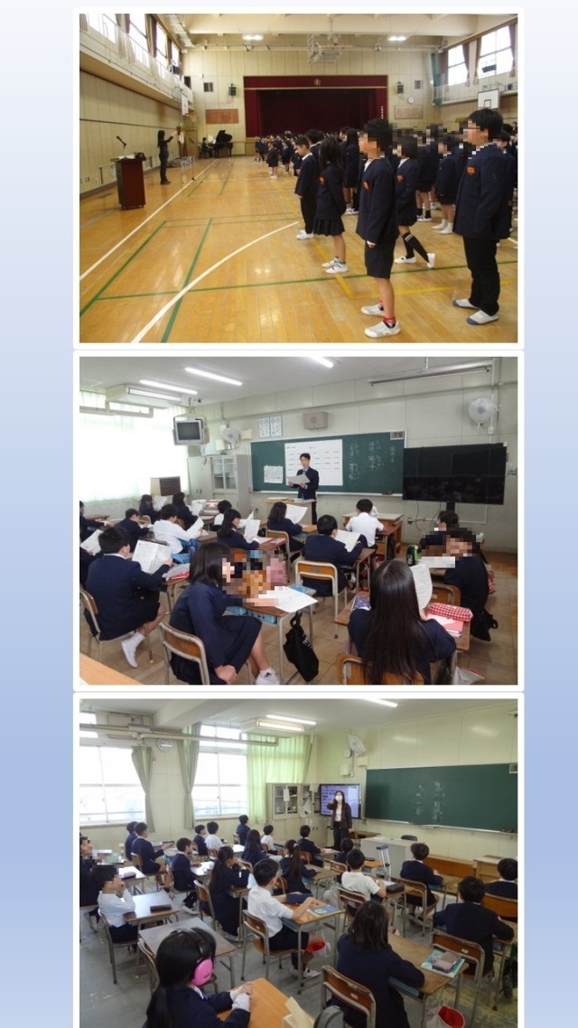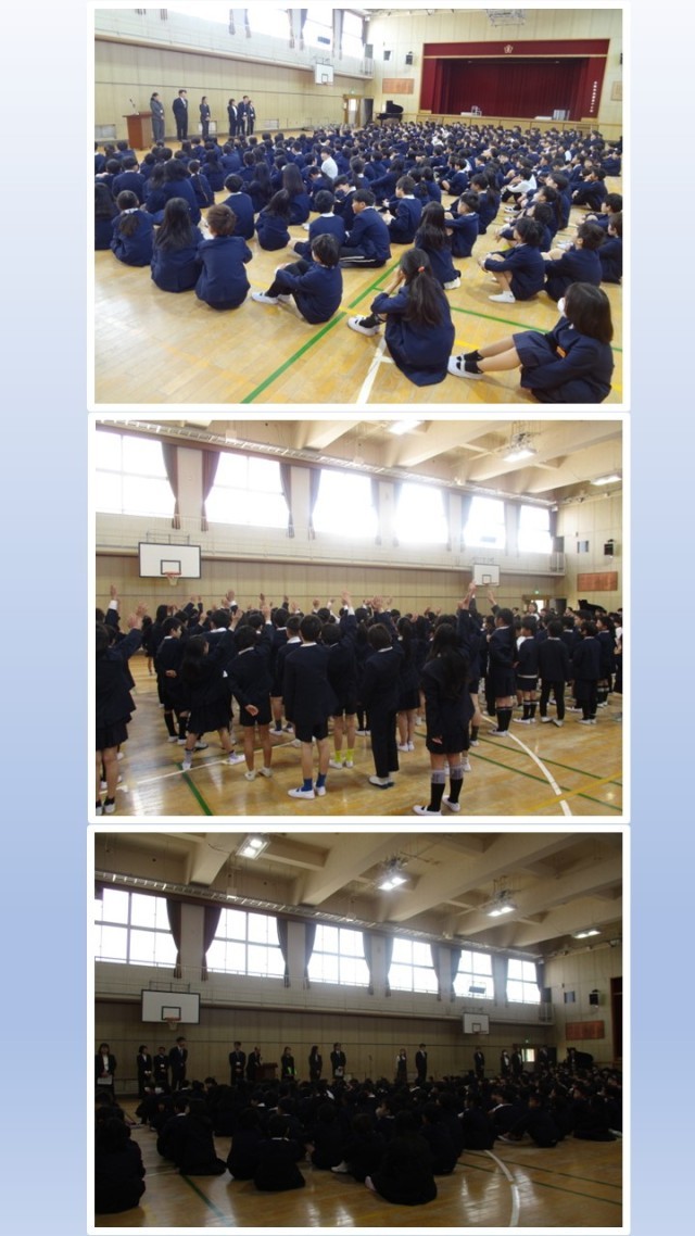 ドキドキの新年度一日目。新しい学級のメンバーと出会った後、講堂で着任式と始業式が行われました。新しく来られた教職員のみなさんとも出会いました。