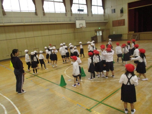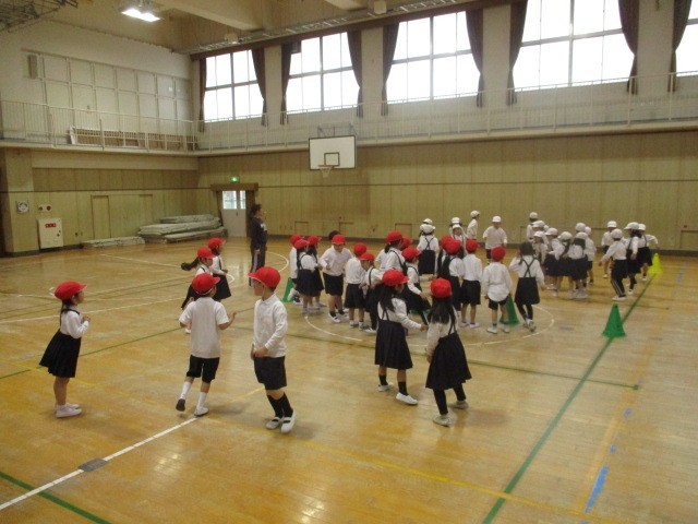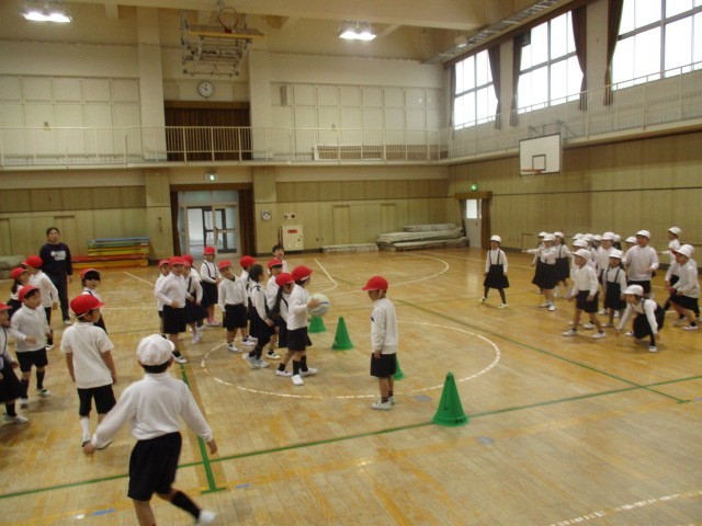 1年生が2クラス合同でドッジボールをしました。子どもたちは元気いっぱい。みんなでなかよくドッジボールを楽しみました!