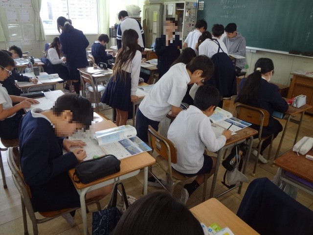 今日の授業では、「一人で調べる」「友だちと協力し合う」「先生に疑問を尋ねる」といった、個別に学びたい方法を選択して学んでいます。これが個別最適な学びと協働的な学びの姿の一つです。