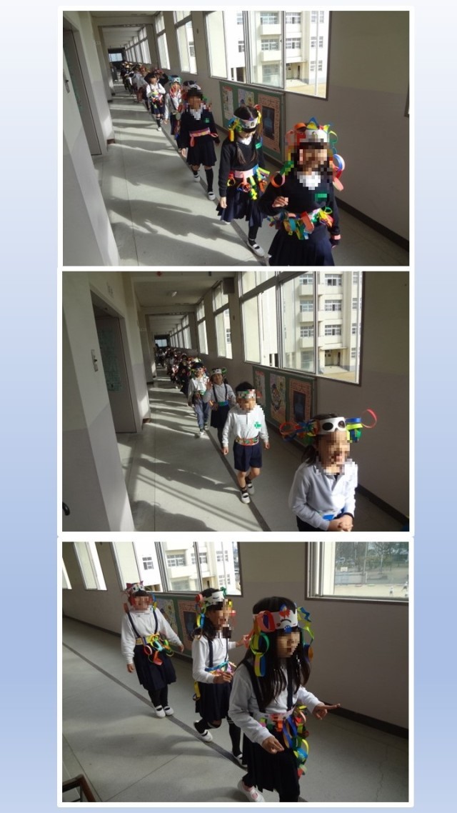 廊下をパレードしました。はずかしいけど、なんだかわくわく。