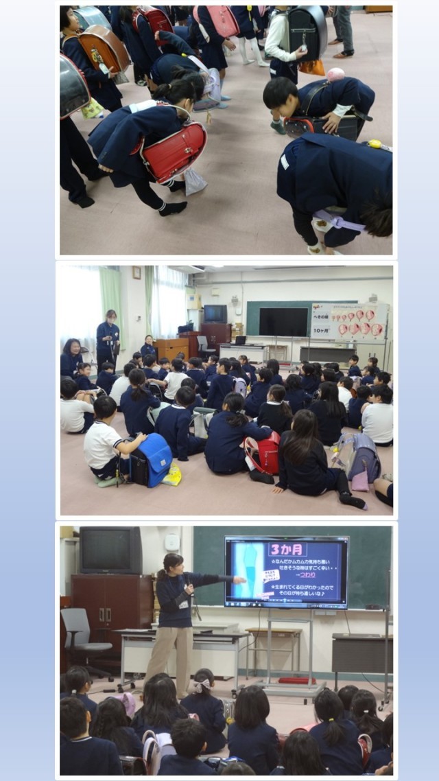 おなかの中での赤ちゃんが育つ様子を学んだり、妊婦さんの思いに少しでも寄り添えるよう、ランドセルを使った体験を行ったりしました。自分の命を含め、大切な命についてたくさん学ぶことができました。~「NPO法人にしよどにこネット」HPより抜粋~NPO法人にしよどにこネット『いのちのふれ合い授業プロジェクト』は、子どもたちに「いのちの尊さ」・「人と人のつながりの大切さ」を伝えたいという思いで、西淀川区内の小学校・中学校・高等学校を中心に授業を開催しております。地域の妊婦さんや赤ちゃん親子と交流したり、「いのち」を育てるお話を聞いたり、ということを中心に授業を展開しています。 -