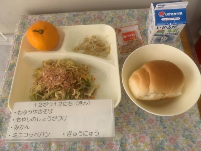 本日は、青森県産の「ふじりんご」です!りんごの生産量日本一の県です。深さと高貴な香り、甘みと酸味のバランスもよく美味しかったです。給食室掲示板にりんごが入っていた段ボールや、写真を掲示し、給食時間には、1年生2年生の教室で美味しいりんごの見分け方のお話しをしました。またお家で聞いてみてくださいね。