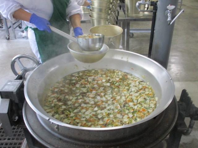 乳アレルギーの児童も食べられるように、今年度からクリームの代わりにシチュールウの素を使用しています。「美味しかった!」「え?クリーム入ってなかったん?」「おかわりしたー!」と大好評でした。