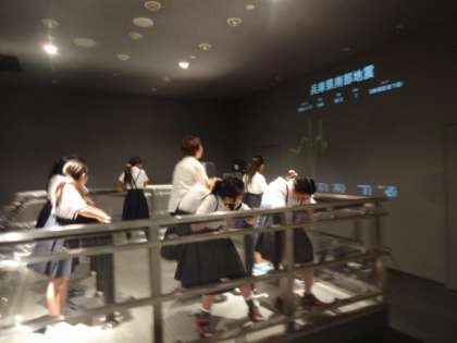 地震の強い揺れを体験する「地震体験」や、地震後に火災防止のため、ガスの止め方とブレーカーを落とす方法、煙の中を安全に逃げる方法などを学習をしました。