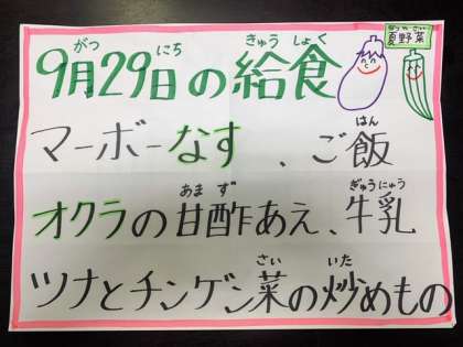 9/29 本日の給食