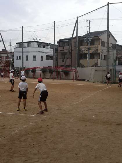 子どもたちが楽しみにしている「クラブ」活動の時間です。写真は運動クラブの活動の一コマです。今日は、キックベースボールをしました!