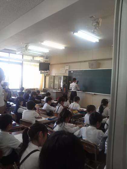 5時間目に2年1組で算数科の研究授業を行いました。かけ算の構成について話し合い活動を中心に学習を進めていきました。活発に意見交流する姿が印象的でした。