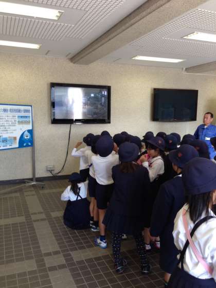 お茶休憩しながらの見学。これはオゾンを使った浄水装置の説明です。