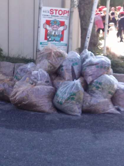 みんなで協力してたくさんのごみを集めました。たくさん汗をかきましたが、気持ちの良い汗でした。