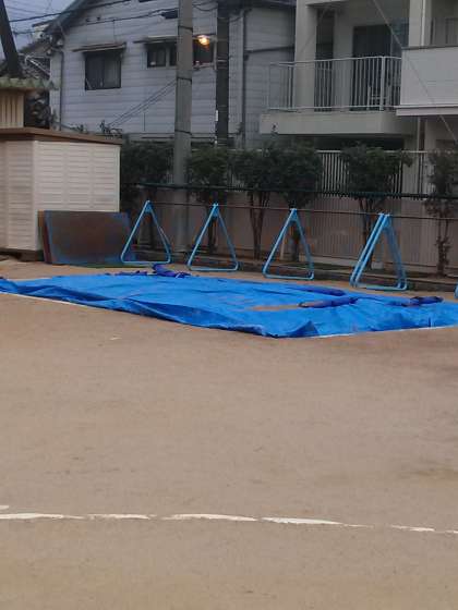 砂場の砂、砂場を覆うシートと逆上がり補助版を購入しました。
