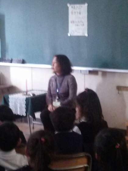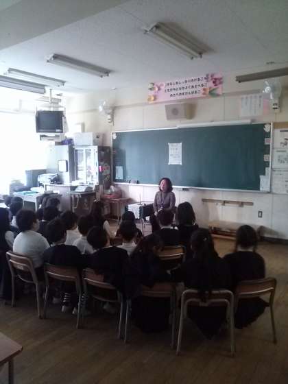 お話サークル「ぱたぽん」の方々に来校頂き、お話を聞かせていただきました。1年生の様子です!