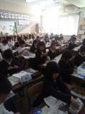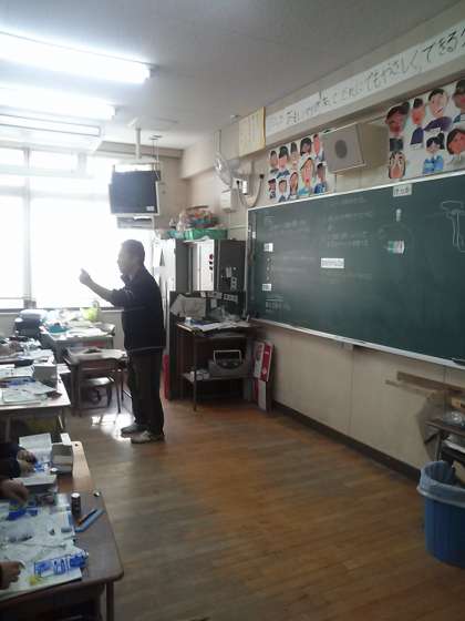 実験道具を使っていろいろな接続を試し、豆電球のつき方を調べていました。