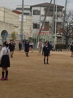 ドッジボールが人気です。先生も子どもたちと一緒にドッジボールを楽しんでいます。