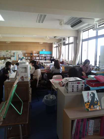 今日は、今年最後の保護者のみなさんによる図書室開放の日です。貸し出し、本の整理や修理にきてくださっています。いつもありがとうございます。