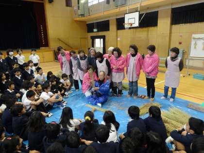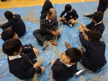 12月16日(火)、地域にお住いの皆様より、5年生がしめなわの作り方を教えて頂きました。ワラを編む体験は、現代の子どもたちにとってはもちろん初めてのこと。みな口々にもらすのは「難しい…」のため息…しかし温かな眼差しと細やかなご指導のもと、見事に全員がしめなわを作り上げることができました!