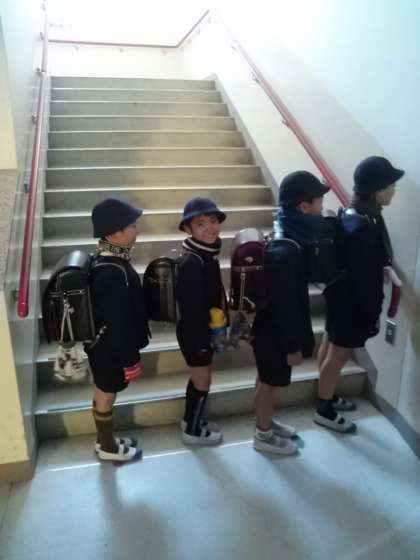 今シーズン一番の冷え込みの朝。登校一番乗りのメンバーです!!!