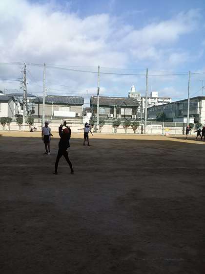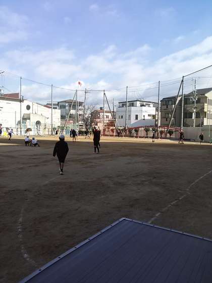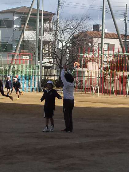 5年生が運動場で、「バナナ鬼」というゲームをしていました。結構、走り回るので、体が温まりそうです。