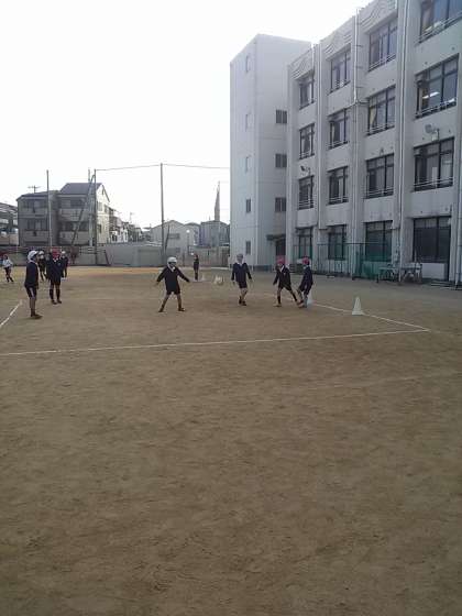 1限目、運動場でお楽しみ会として企画された「サッカー」大会が行われていました。