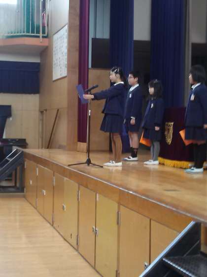 代表の子どもたち4人が2学期の思い出や来年の抱負を作文に表しました。