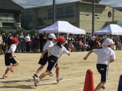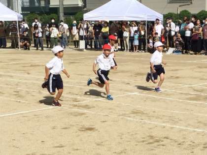 1年生のかけっこです。小さい身体を弾ませてゴールめがけて走ります。頑張れ!大声は控えなければならない状況ですが、自然と心の中に声援がわきおこります。1着だった子も、そうではなかった子も。結果はいろいろですが、頑張る姿はキラキラでした。