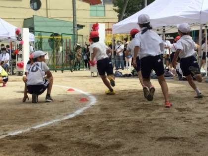 4年生の徒競走です。「走れ!」か‥このシンプルさが4年生らしいです。元気いっぱいの4年生。もう思いっきり走りきれ!前半の3年生でも感じましたが、低学年とはちょっと雰囲気がちがいます。迫力が芽生えつつあります。いやいや立派に迫力オーラを出している子もいます。全力が素敵です。