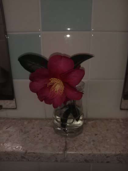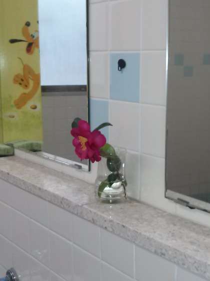 トイレに入ると、一輪の花が飾られていました。聞くと、清掃当番の人がわざわざ自宅から持ってきてくれたとのこと。感謝感謝です!