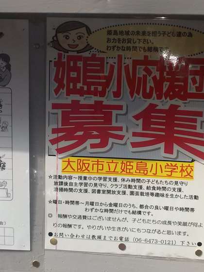 子どもたちの活動をサポートしていただく応援団を募集中です。詳細は、地域掲示板に掲載のポスターをご覧いただくか、直接学校までお電話(6473-0121)ください。