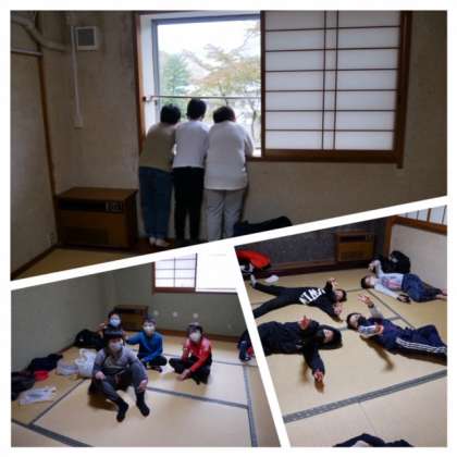 午後の活動は、明日の予定を前倒しし、勾玉づくりとなりました。それまで少しの間、入室し、部屋でくつろいでいます。写真はある男子部屋のようすですが、ほんとに楽しそうにたわむれています。子どもって純真だなって思います。