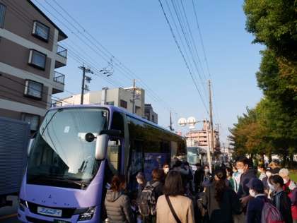 時間どおりに出発式を終え、たくさんのお見送りをうけて、バスに乗り込み出発しました。さあ、どんな楽しい時間が待ち受けているかのか。最高の2日間に行ってきます!