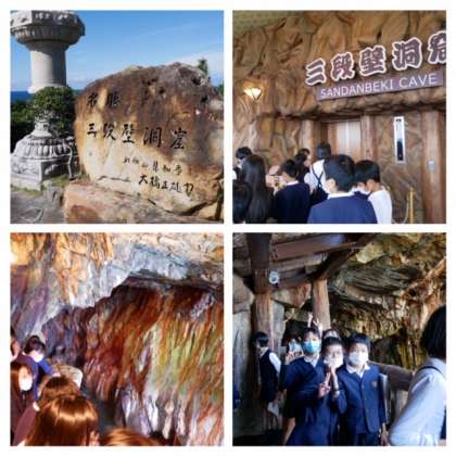 1組に帯同し、三段壁洞窟です。白浜の名所。自然の大きな力を感じました。空の青、海の青がとても美しいです。
