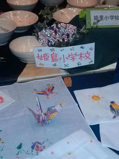 本日、エルモ西淀川にて、西淀川区PTA発表会が行われました。姫島小学校PTAからは、友禅染の作品を展示しました!(^^)!