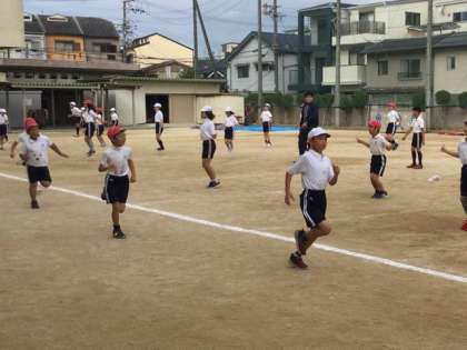 くるくると軽やかに跳べる子もいれば、たくさん引っかかってしまう子もいます。まだまだやり始めたばかりなので、たくさん練習して上手くとべるように挑戦しましょう。かけあしもすぐにバテてしまう子もちらほら。たくさん走ったら、みるみる走れるようになって、かけあしが楽しくなってきますよ。若いからね、動いた分だけ、きっと体力はつきます。