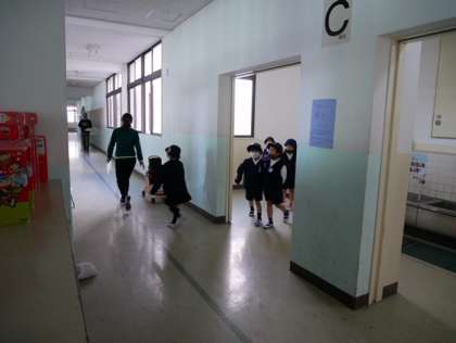 10月17日(土)に、区役所・消防署・地域防災リーダーのみなさんのご協力を得ながら実施予定であった避難訓練・防災学習は雨天のために中止となりましたが、今日は、その時に予定されていた訓練のうち、地震からの危険回避行動および津波警報が発令された時の対処について訓練を実施しました。