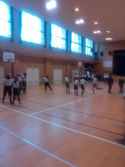 フリスビードッジボールをクラス対抗でやっています