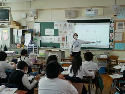 5時間目に5年2組の英語の授業をみにいきました。先生は、日本語をいっさい使わないオールイングリッシュの授業にチャレンジです。よくききとれて理解できる子、なんとなくしか理解できない子、いろいろだと思いますが、今の段階で一番大切なのは、なんとなくではあっても積極的にコミュニケーションを楽しむこと。英語って楽しいな、もっと学びたいなと感じる子が一人でも多くなったらいいなと思いました。